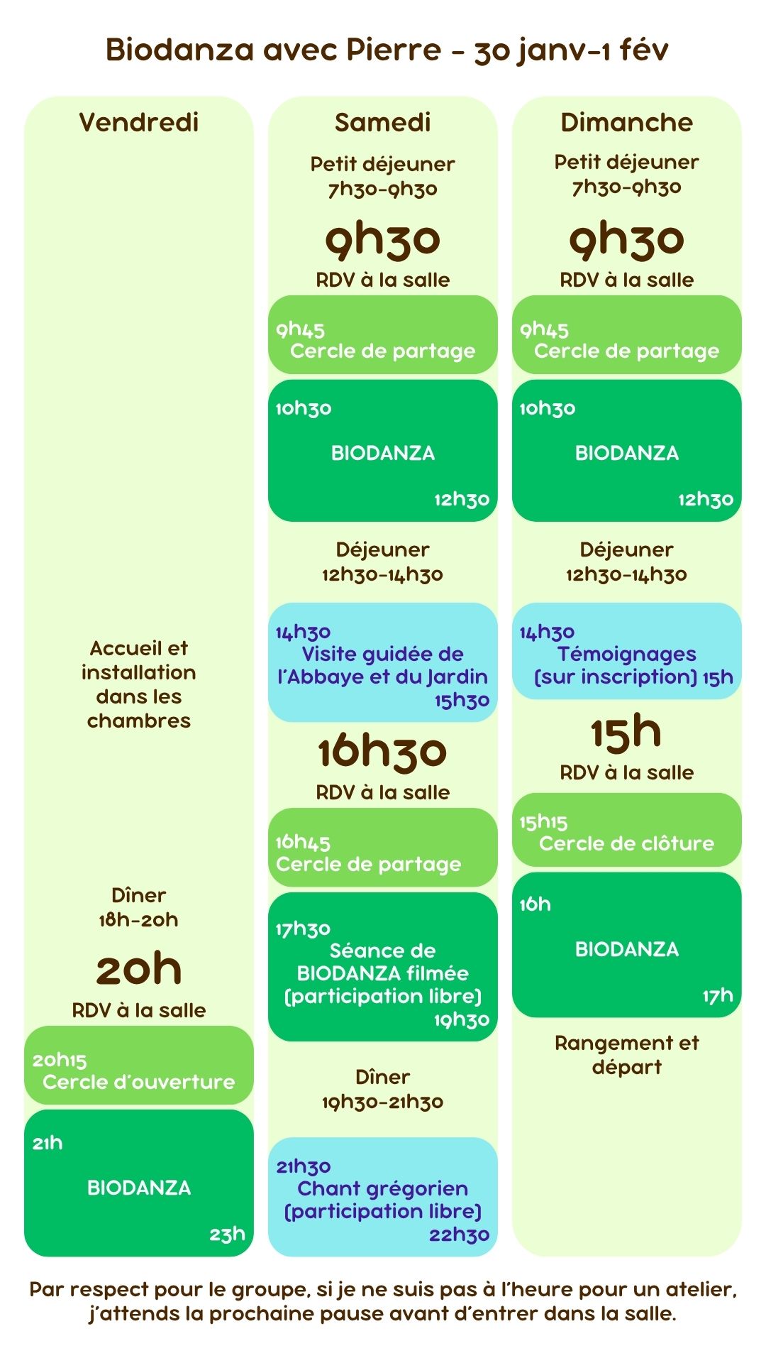 Tu es libre de participer à chaque week-end de façon indépendante, selon tes envies et disponibilités.